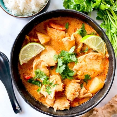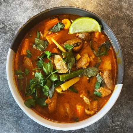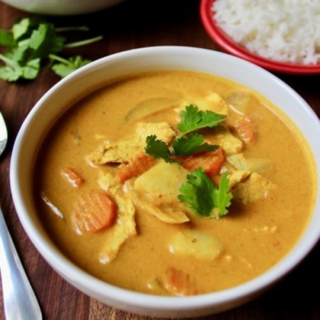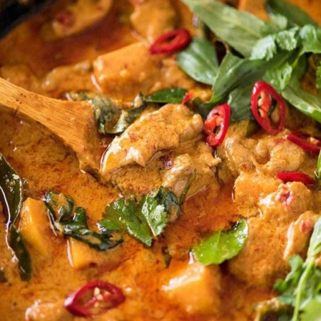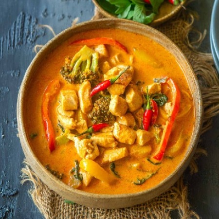 (Served with rice.) Vege on food 100 % coconut milk (No darly products) No fish sauce and shrimp paste in curry Recommend for vegan and seafood allergy.