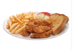 Includes your choice of fries, tots or apple sauce and kids drink.
